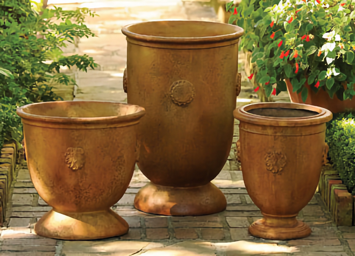 Anduze Jardinieres - (L to R) Medium, Large, Small. Sandstone finish.