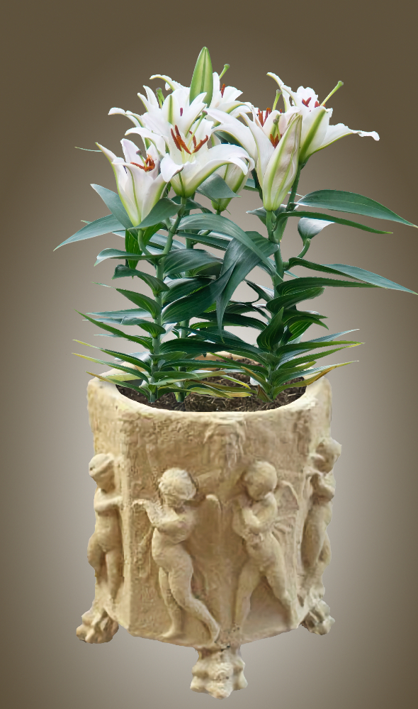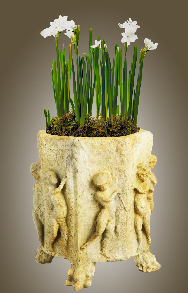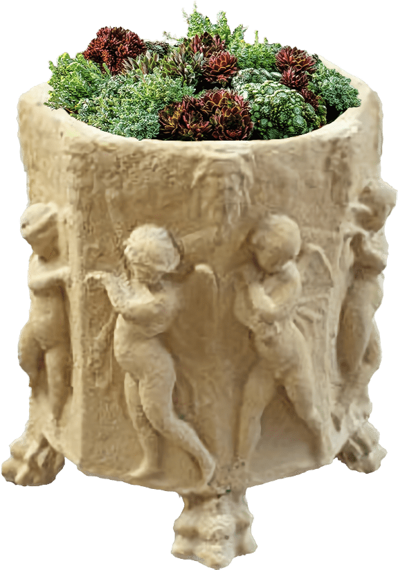 The Ancient Celtic Fairy Pot is a classic medium sized footed planter with wonderfully sculpted design.The Ancient Celtic Fairy Pot will grace a garden terrace or smart city space and looks simply stunning. It is perfect, outdoors or inside, for foyers, atria, decks, entrances or verandas. The vase is an hexagon with a sylvan fairy on each face.