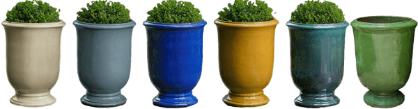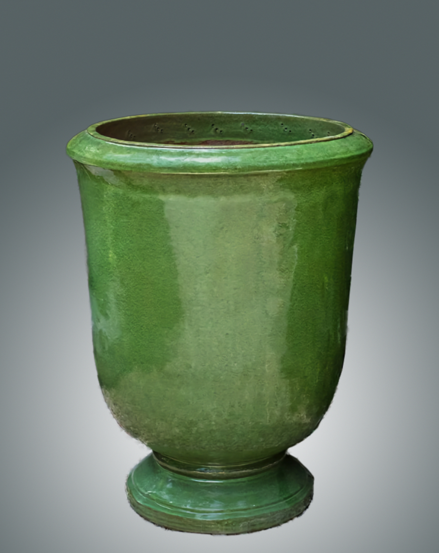 The Antibe is a stunning medium sized glazed terracotta footed urn. With a Anduze shaped bowl and discrete bull nose rim this urn will fit in both modern and classic decors. Plant inside or outdoors, on a mantle, table, terrace table or in a garden nook. Make a statement with a pair flanking a mantle or sideboard. These urn are distinguished by their splendid forms and clean lines.