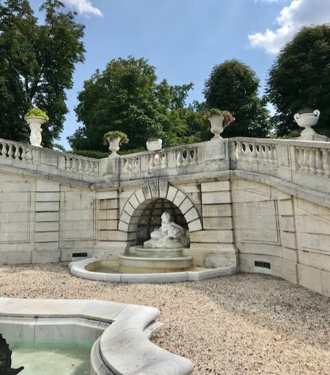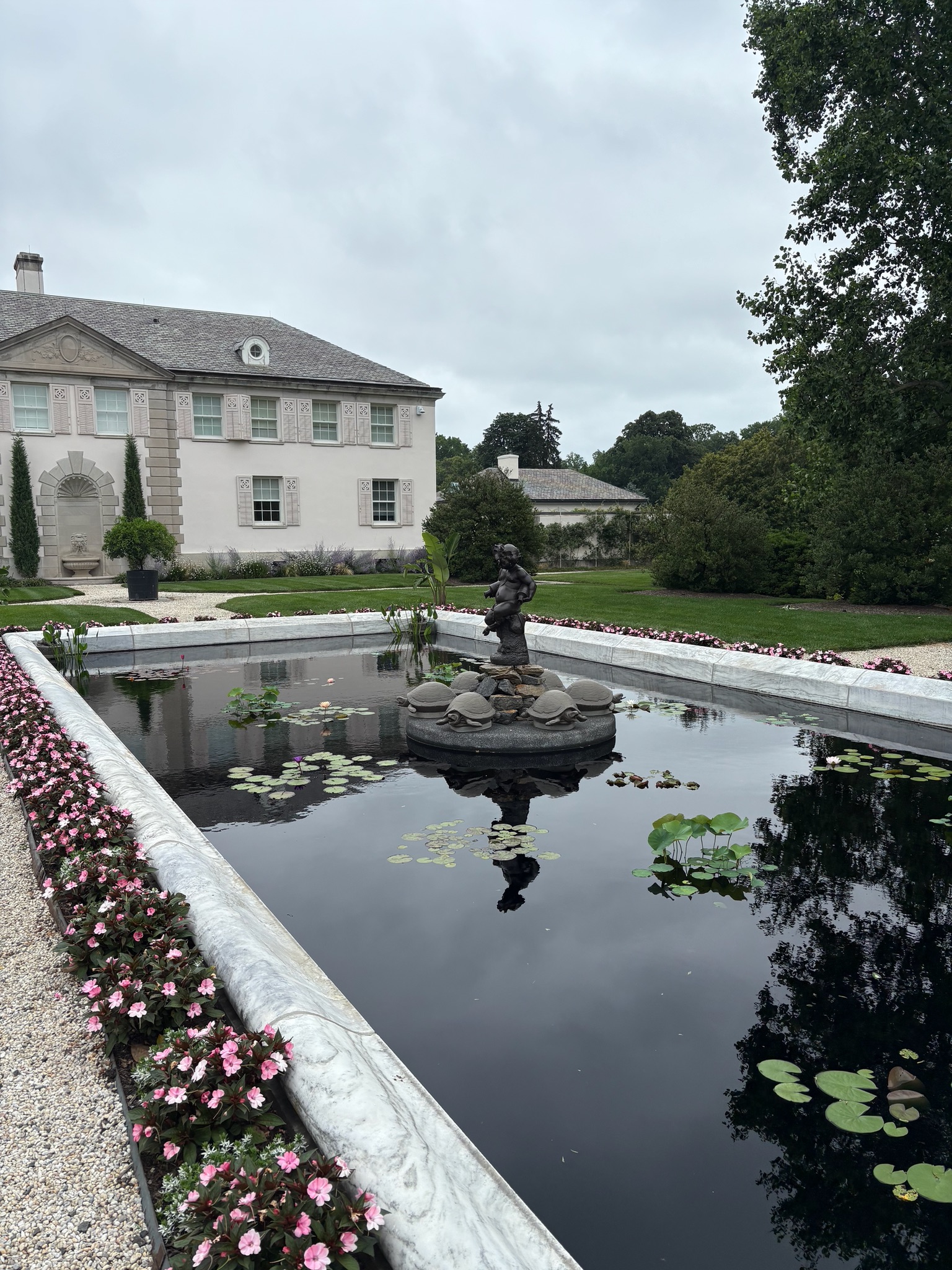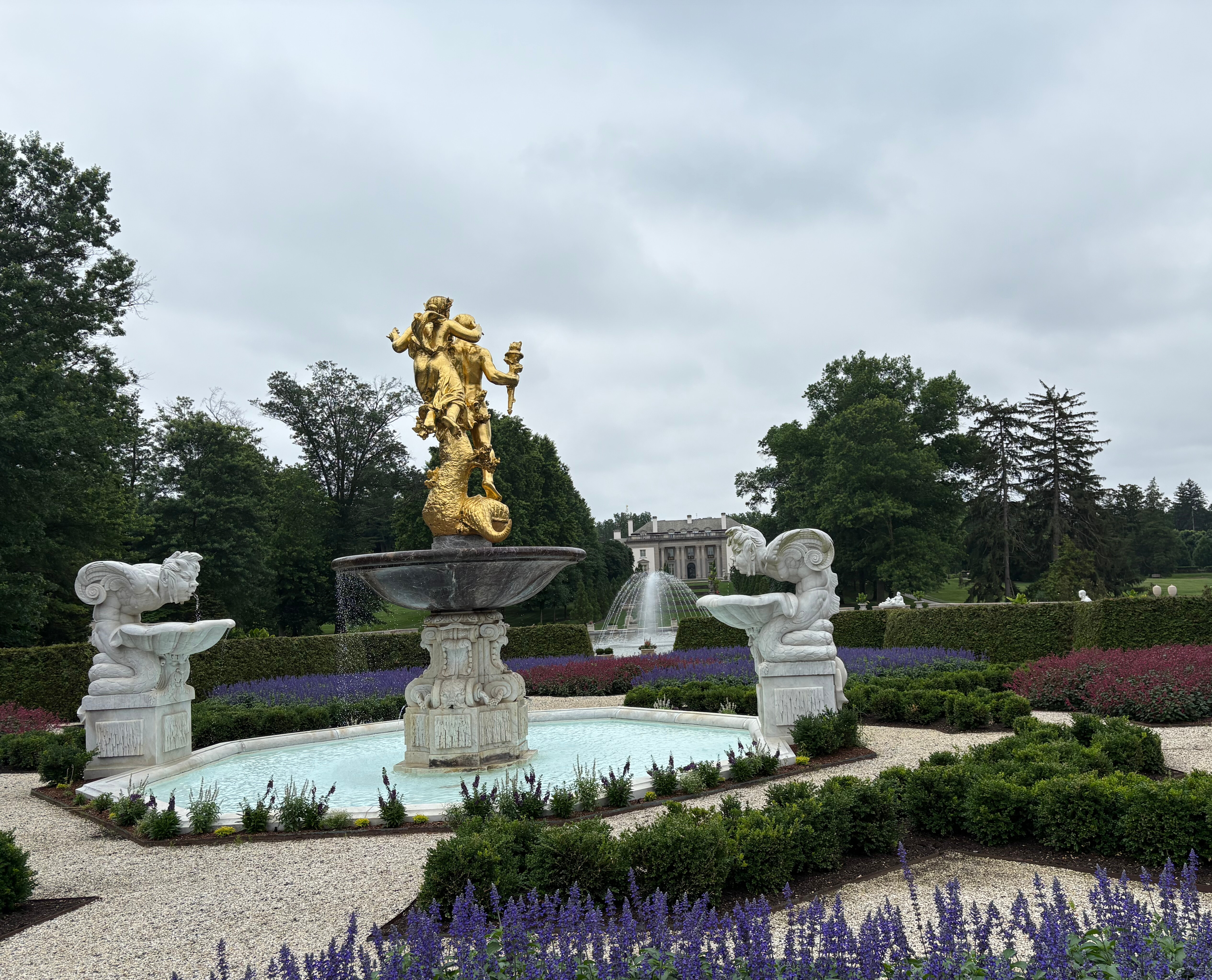 HenFeathers Team Visit to Nemours... Wait, Are We in France?The HenFeathers team visited the Nemours Estate, in du Pont Country in Wilmington, Delaware. Built by Alfred I. du Pont in 1909–10 as a gift for his second wife, Alicia, the estate was named after his family’s ancestral town in France and shaped by the esteemed New York firm Carrère & Hastings in the Louis XVI style. Much of the original land of the Nemours Estate has been dedicated to the location of the well known Nemours Children's hospital, and the home and gardens is used as a museum, park, and event venue. Gardens at NemoursAt the heart of the estate lies a commanding axial design echoing Versailles’s Petit Trianon—a central “Long Walk” stretching from the mansion’s facade, bordered by serene woodlands. This grand promenade aligns visitors with a series of meticulously composed garden spaces, each harboring its own charm and symbolism. Close to the chateau, the Boxwood Garden unfolds in precise parterre geometry—with low, crisply clipped hedges forming floral scroll patterns, anchored by a central faun fountain. Clean lines of pea gravel paths guide guests through seasonal flower blocks and bulbs, punctuating the pattern with bursts of color. Adjacent sits the Four Borders garden: softer in planting style but still contained within clipped hedges, crowned by tuteurs and shaded by a venerable linden allee that ushers visitors gently into the surrounding woodland. Further along the axis lies the monumental Reflecting Pool, shimmering at the foot of the grand Colonnade memorial to du Pont ancestors. Bordering the pool are stately fountains, sculptures, planters, and urns, contributing to a layered landscape beautifully framed by architectural elements. Adjacent to this water mirror is the Maze Garden, a thoughtfully designed labyrinth of Western arborvitae and Japanese barberry hedges, centering on Henri Crenier’s gilded “Achievement” statue, atop a base adorned with Triton and Neptune’s visages. This space introduces an element of playful discovery within the overall formal order. Descend below via a grand staircase and you land in the Sunken Garden—crafted by du Pont’s son Alfred V. and Gabriel Masséna in the early 1930s. With grottoes, cascading fountains, a small lake, and a sculpture by Charles Marie Sarrabezolles, it invokes Italianate romance nested within French formality.Topping the axis is the diminutive Temple of Love, sheltering Jean Antoine Houdon’s life sized statue of Diana, crowned by classical elegance that completes the narrative from mansion to woodland.