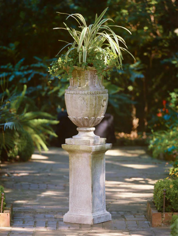 The Brindisi Urn is an HenFeathers classic urn with an ancient Italian Republic design. Brindisi is the destination of the Appian Way (Latin and Italian: Via Appia) which was one of the earliest and strategically most important Roman roads of the ancient republic and connected Rome to Brindisi. Extremely elegant matched with the Brindisi Pedestal, but looks great matched with many of our other larger pedestals such as the Classic Oxford Pedestal shown below.