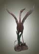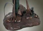 The Bronze Prancing Heron Fountainhead Sculpture is an majestic sculpture of a heron dancing in tall reeds. It is extremely well done and quite stunning. The sculpture features intricate, hand forged details with a beautiful brown fire-applied patina. The craftsmanship is extraordinary. This sculpt is a terrific addition to any garden setting inside or outside and will be the grand centerpiece of any tableau. The Majestic Heron In Reeds Sculpture is also piped and makes a beautiful fountainhead by a garden pond, pool or fountain basin.
