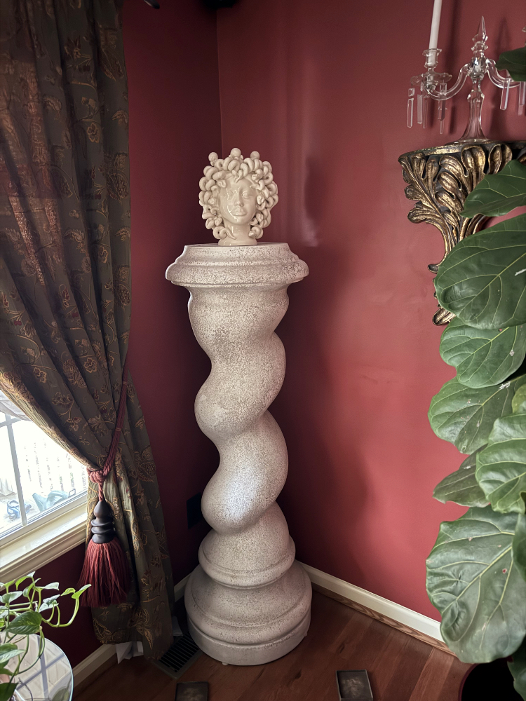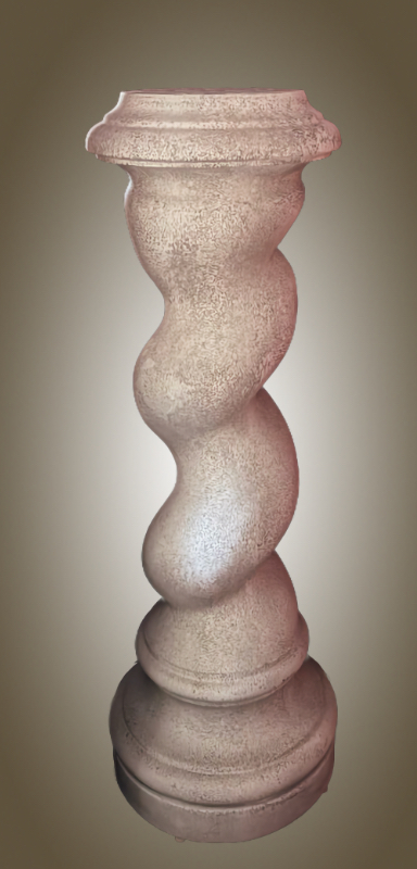Inspired by the Byzantine architectural motifs of the Late Roman Empire with the spiral pedestal, the spiral influenced the Baroque and Rococo periods, our Byzantine Helical Pedestal stands as a faithful representation of the spiral columns of the age. Think of Bernini and the Vatican altar columns. The column is topped with a simple cap that is 9" in diameter. The pedestal itself is an impressive 57" tall, that's just about 5 feet This pedestal is the perfect fit for many of our small and mid-sized urns, and sculptures. Used with sculpture, urns or with planters, the Byzantine Spirals will certainly make an impression and enhance your object d'art.
