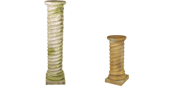 Inspired by the architectural motifs of the Late Roman Empire or Byzantium, our Byzantine Spiral Pedestals stand as faithful representations of the spiral columns of the age. With simple bull nose tops that is 9" in diameter the 28" Byzantine Spiral Pedestal and 10" in diameter on the 45" they are perfect fit for many of our small and mid-sized urns, and sculptures. these columns are also versatile and is the perfect stand for many or our planters. Used with sculpture, urns or with planters, the Byzantine Spirals will certainly make an impression and enhance your object d'art.