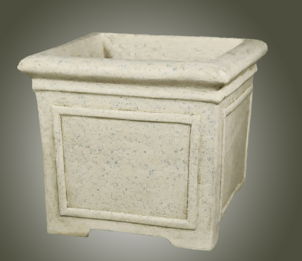 The Grantham comes in τςο sizes ranging from μεδιθμ at 16" Sq. by 18" high to large size 24.5" square and a bit over 21" tall. Create interesting tiered vignettes by using more than one size. This distinctive planter is meticulously hand cast and hand finished in our USA foundry in extremely durable fiberstone. Fiberstone is a mixture of sand and stones cast into the surface to give the appearance of aged stone. Reinforced with a fiberglass backing, it remains lighter and less fragile than concrete. Guaranteed outdoor durability. Shown in Cathedral Stone and Antique Stone, but, is available in all the colors shown in the chart below. Make your choice by selecting your finish in the finish/colors options list by the "Add to Cart" button. Finishes are hand applied and may vary, making each piece unique. ![]()