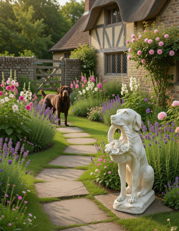Classic English Dog with Basket Sculpture | |||||||||||||||||||||||||||||||