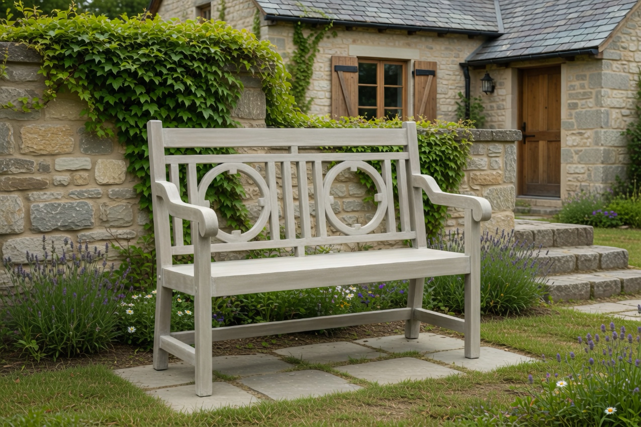 The HenFeathers Collection also offers classic beautiful English and French garden furniture designs artfully formed in the Faux Bois method. A classic English garden Loveseat/bench, the Devonshire Bench surprises all with its smoothly finished Faux Bois construction and rich patina. A substantial heirloom furniture piece for your collection. Its generous size adds to its presence.