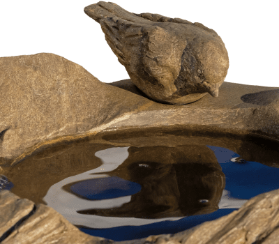 The Driftwood Perch Birdbath is a natural cast stone design of a small pool (the birdbath) in a driftwood tableau. A bird perches overlooking the natural pool. It makes the perfect gift for the bird lover for any holiday. Fill with water for our avian friends.