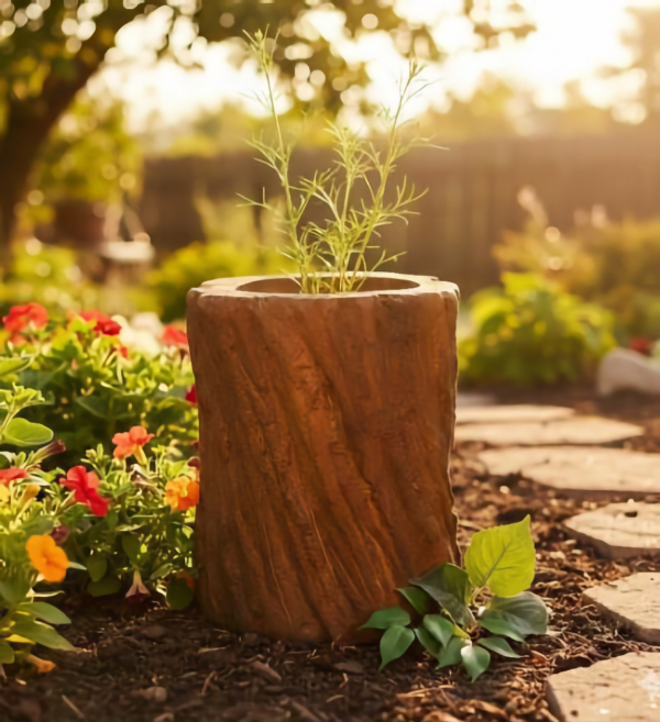 Natural texture with our Saranac Faux Bois (faux wood) planter for both indoor and outside settings.