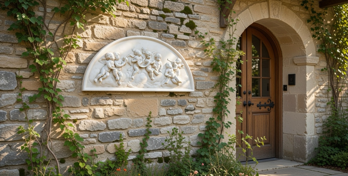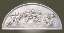 ![]() Click to Enlarge Our Gathering of Cherubs Lunette Wall Decor is an incredible piece of wall sculpture that is both charming and so well done. Imagine a gathering of cherubs seriously considering some important matter. A congress of cherubs holding forth, reminiscent of our founding fathers, but, so much cuter. All this is set in a semi-circle plaque that is almost 4 feet wide and almost two feet high. It is are perfect for over an outdoor/indoor fireplace, mantle, patio, terrace, or solo on a garden wall. This could also be a great addition above a sideboard of a formal dining room. What makes this sculpture so special is the hand-molding and hand-rubbed finishes. No two pieces are exactly alike, just like an aged antique.
