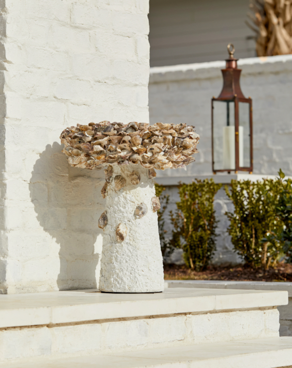 Hand cast and hand finished in Oyster Shells, concrete and steel. Although the Hampton Oyster Shell Birdbaths are made of concrete, its design is nothing short of sublime.