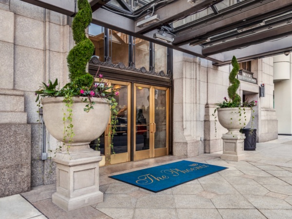 A pair of Huntington Urns flank a grand entrance. Truly impressive.