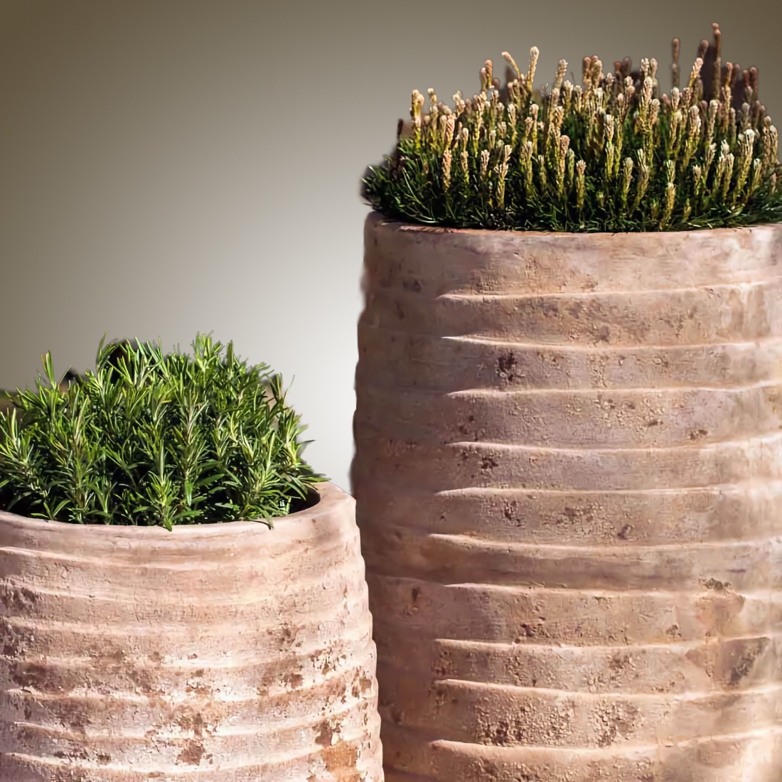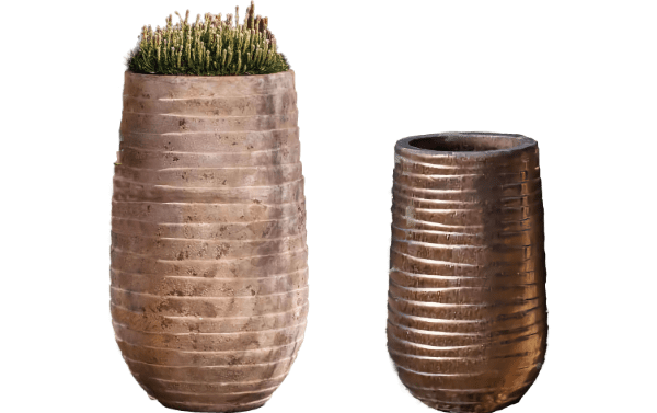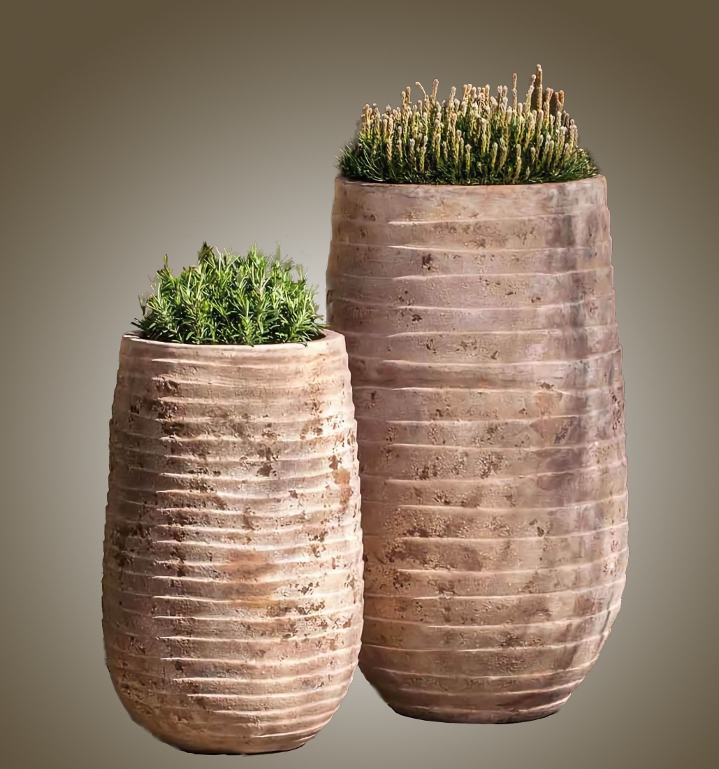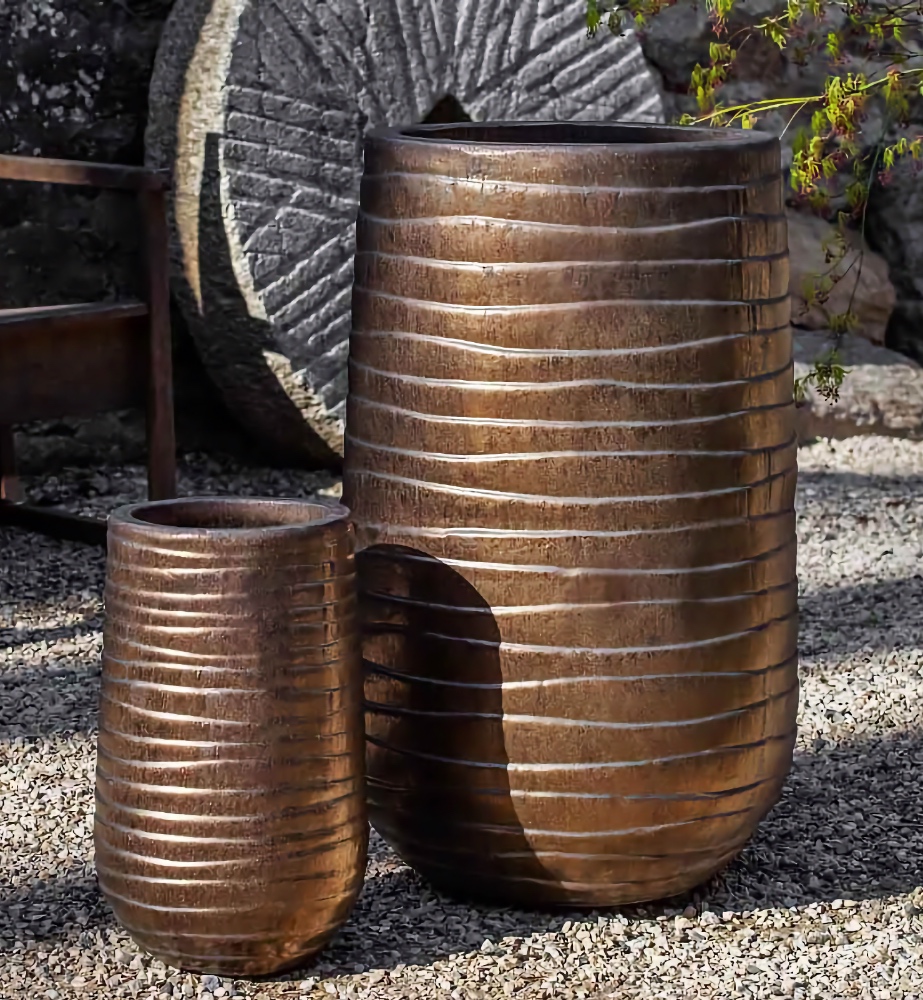 The Tall Ipanema Planters are a set of two gorgeous pots with rich, multi-layered glazes. Each pot has its unique version of the beautiful Antico Terra Cotta glaze, a deep, layered patina of aged terra cotta thatŐs just stunning. The Ipanema Planter Sets also come in a rich Bronze patina, which is just amazing The sets come in two sizes, from the large one thatŐs over 32" in height to the smaller one thatŐs just over 20" in height. Together, they make a beautiful tiered arrangement and are perfect for poolside, verandas, patio corners, and pretty much any indoor/outdoor garden setting. You can use them together in a grouping of three or individually, either way makes a special statement. You can also use them to define a walkway or entrance or as a divider in a larger setting.