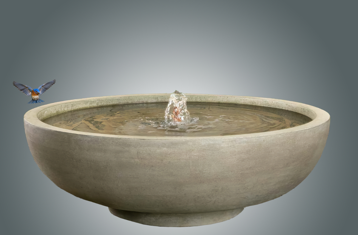 Our Isla Fountain is a very large low profile basin fountain that transforms any space adding the tranquility of water into a home, terrace, balcony, patio or garden. This classic modern serenity fountain features a beautifully shaped bowl with clean lines and is the perfect accent in a garden sanctuary. This is also a very large fountain over 4 feet across and weighing in at over 445 lbs. makes for an imposing presence be the focal point in any setting.