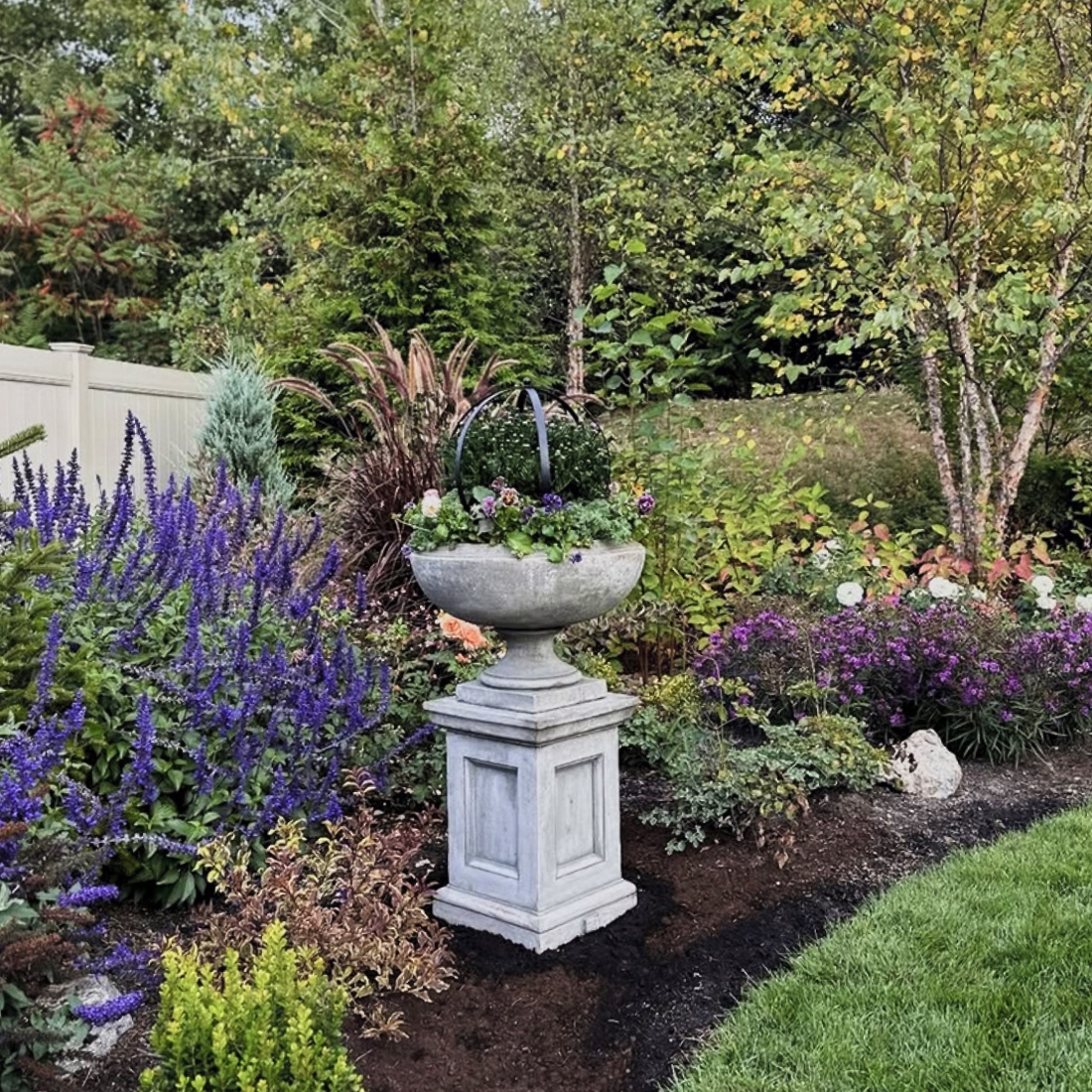 This distinctive pedestal is meticulously hand cast and hand finished in our USA foundry in high density cast stone. Guaranteed outdoor durability. Our cast stone products are manufactured in the USA using locally sourced materials using the wet casting technique with a proprietary high density cast stone mix. Cast stone produces a strong and durable product that will weather naturally in an outdoor environment. Simply stated, cast stone is chosen for its beauty and authenticity. The Barnett Pedestal is shown here in Alpine Stone (AS), but, is also available in all the finishes shown below. Make your finish choice by selecting from the options list below. Finishes are hand applied and may vary, making each piece unique. 15" sq. x 21.5" H Greenwich Pedestal - Match with the Large Jensen Urn