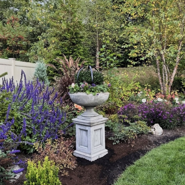 The Greenwich Pedestal is the matching base for the Large Jensen Urn, but is also a great fit for many of our other urns and planters. The pedestal is over 25" tall and when matched with the Large Jensen Urn the total height is almost 4 feet, making the pair a commanding focal point to a garden niche, patio, entrance drive or an indoor entrance foyer. It is also quite substantial and sturdy and once placed will be very stable. The pedestal is equipped with a 7" hole for drainage.