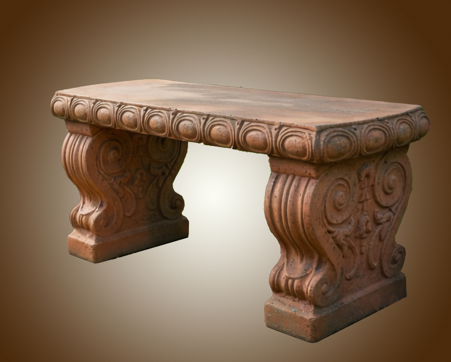 This distinctive bench is meticulously hand cast and hand finished in our USA foundry in extremely durable fiberstone. Fiberstone is a mixture of sand and stones cast into the surface to give the appearance of aged stone. Reinforced with a fiberglass backing, it remains lighter and less fragile than concrete. Guaranteed outdoor durability.