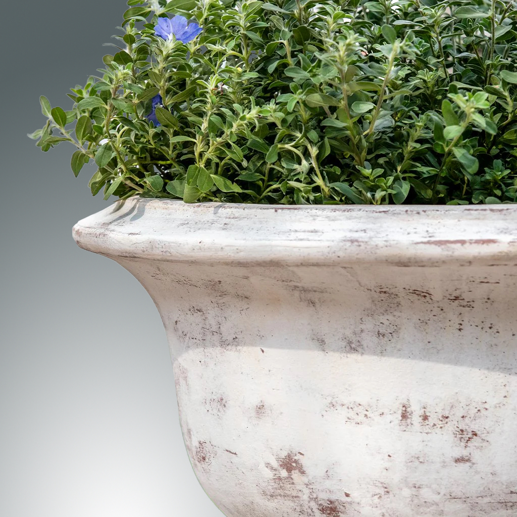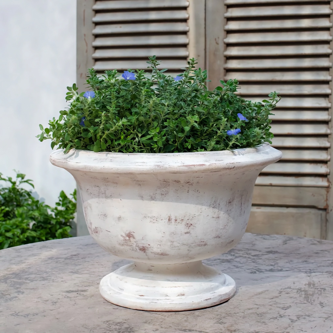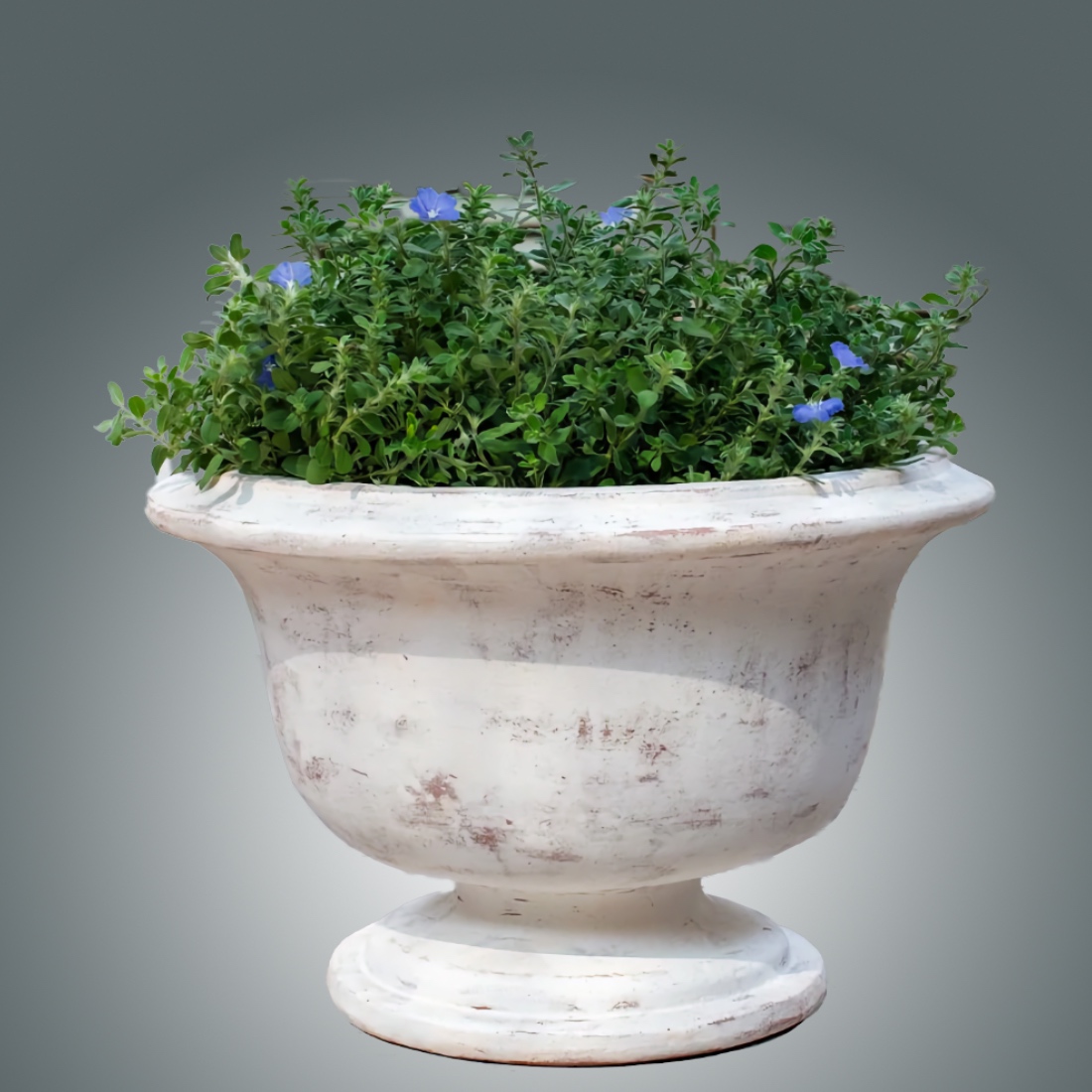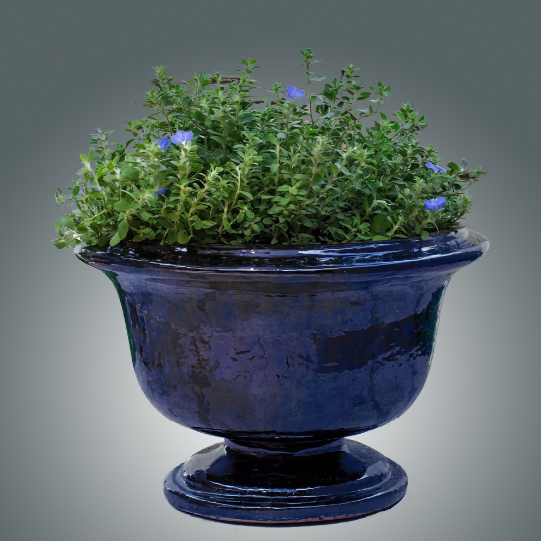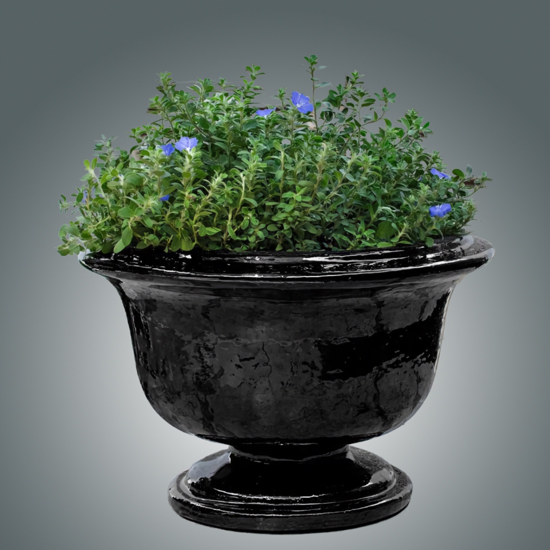 The Margaux Urn are stunning medium sized glazed terracotta footed urns. With a tapered bowl and discrete rim this urn will fit in both modern and classic decors. Plant inside or outdoors, on a mantle, table, terrace table or in a garden nook. Make a statement with a pair flanking a mantle or sideboard. These urn are distinguished by their splendid forms and clean lines.