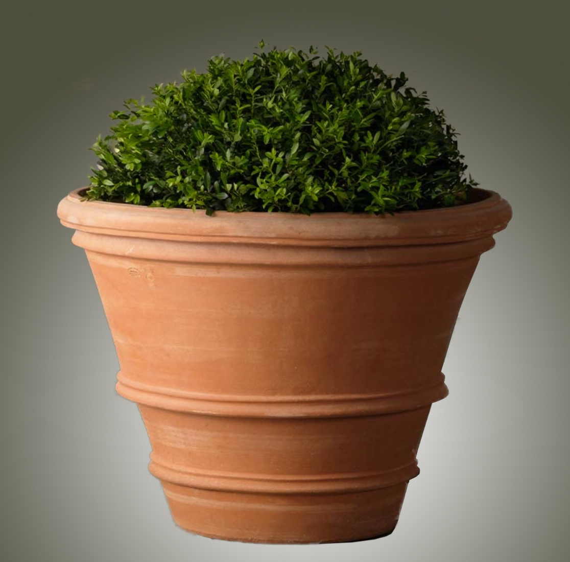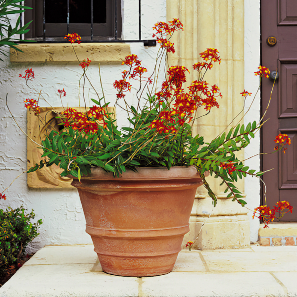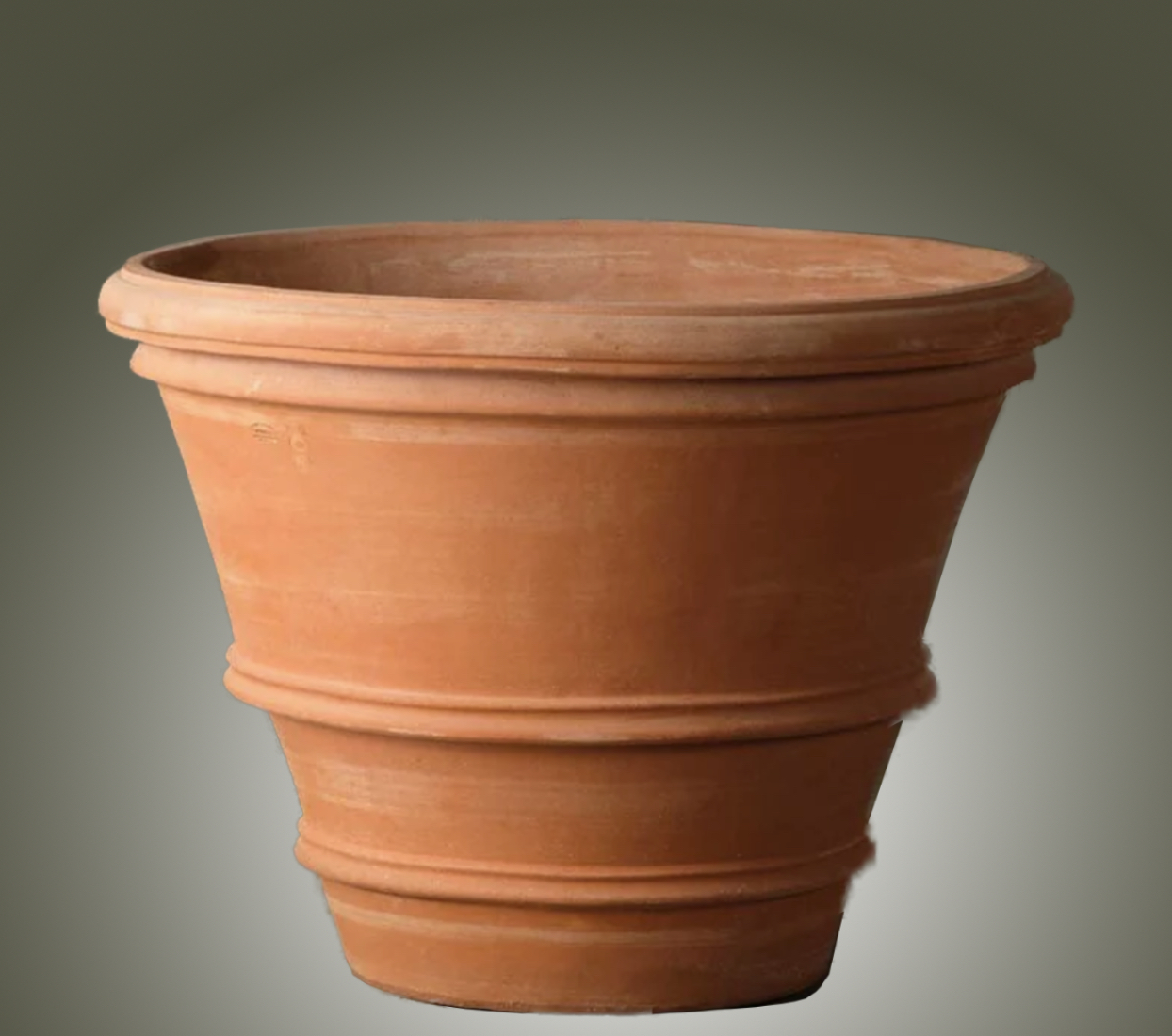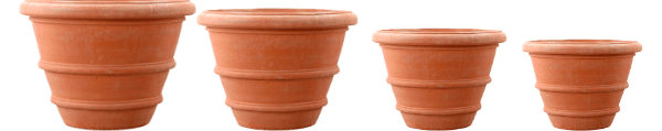 The Molded Rolled Rim Vases are simply the finest terracotta molded rolled rim planters available. Imported from Impruneta, Italy and therefore the best in the world. In our Molded Collection, the clay is pounded by hand into molds. After about twenty-four hours, the mold is removed. A potter then finishes the pot with hand tools. They are top quality Impruneta pots, exquisite, beautiful and durable, an Heirloom. Available in four large sizes.