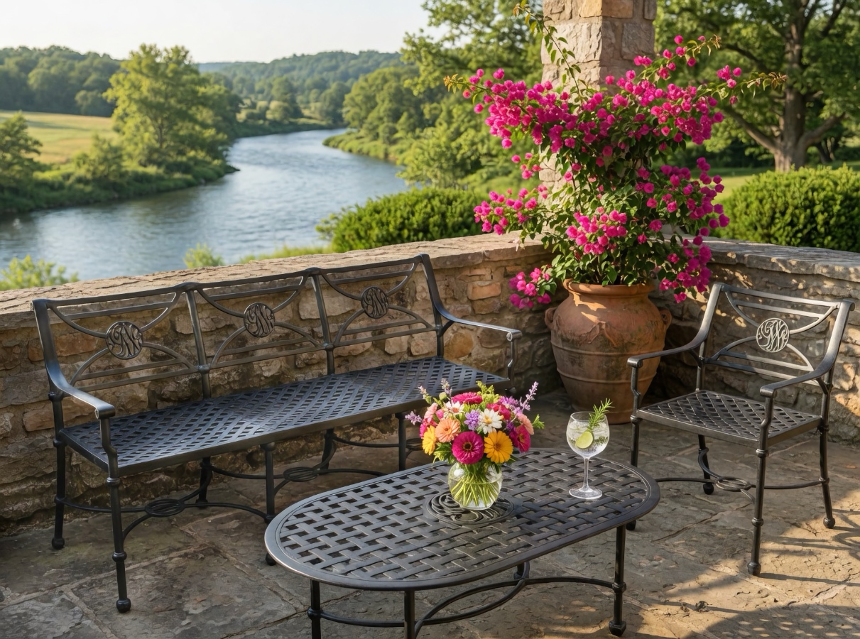 As part of our George Washington's Mount Vernon Furniture Collection, the Mount Vernon Chair is an heirloom quality chair that has an elegant, graceful feeling, on the terrace or by the pool. The chair is emblazoned with the classic George Washington monogram cypher on the back. The chair is a classic striking design for the home, patio, terrace or that secret nook in the garden. Match with the Mount Vernon Bench (see below).