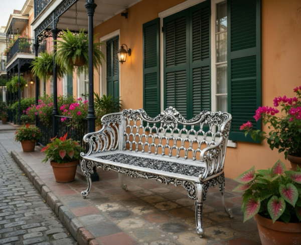 The New Orleans Bench is an heirloom quality bench that is a striking addition to the home, patio, terrace or garden. These benches are American made in Cast Aluminum and are welded, prepped, painted and hand finished with reliability and longevity in mind. Our unique finishing process gives every piece the strength to withstand the harshest of elements without surrendering any of its character.
