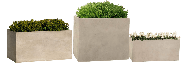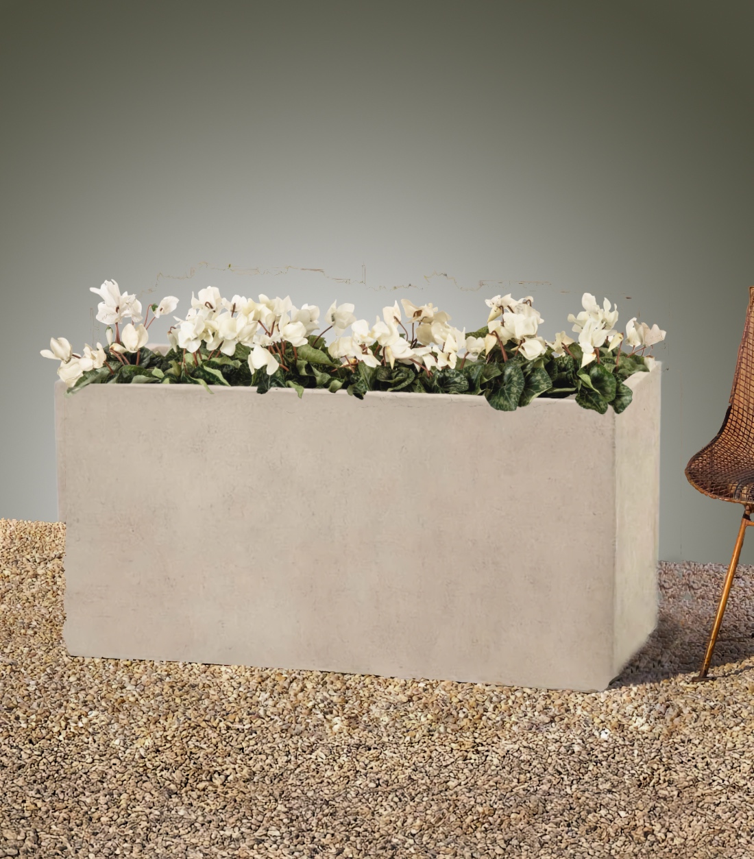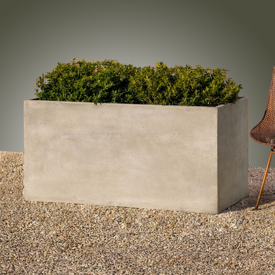The Rectangle Planter is a classic trough planter with clean simple lines. They ares also very large trough planters with the widest version 4 feet in length and two feet in height. The other two sizes are three feet in length and one 18" high and the other 24" high. These troughs are ideal for the veranda or patio edging or to demark an area. All of them are ver substantial ranging from 214 pounds to 670 pounds. The Rectangle Planter with their cleans lines will fit in both traditional and modern settings alike. Perfect for entrances, patios and practically any indoor/outdoor garden setting and can be used as an area dividers.
