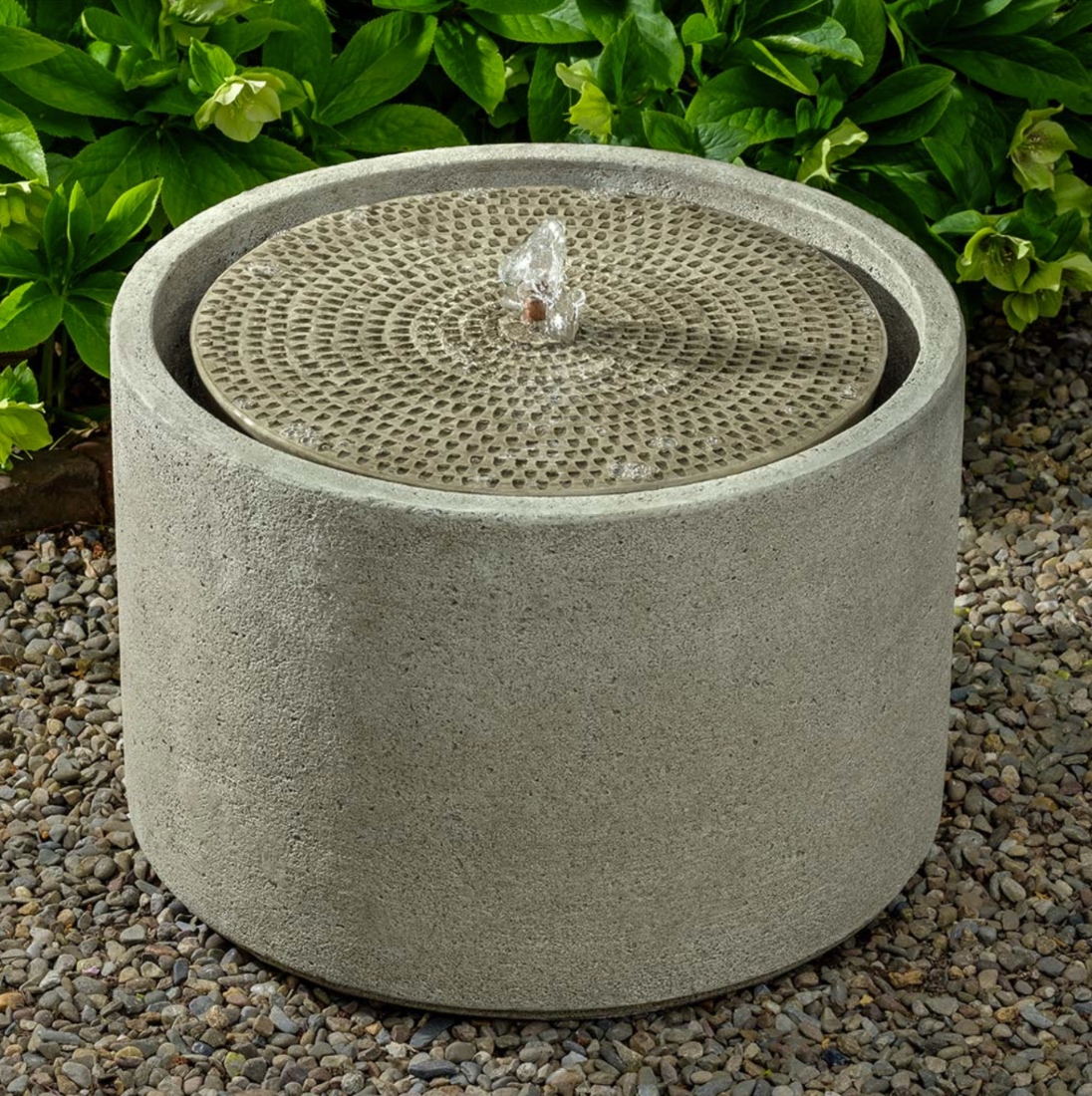 With the tranquility of water, our Salinas Cosmos Fountains transform any space in a home, terrace, patio, or garden. The fountain features a cylinder profile. A copper fountain head is in the center at the cylinder top that has the beautiful rings of sculpted indents. The top plate design is quite mesmerizing. This fountain is striking in a southwestern, asian, mediterranean style garden. Actually, this fountain fits almost anywhere, indoors tabletop or outside on a veranda table or as a standalone display within a garden setting. Using two or three of the fountains together in a tiered display is a knockout presentation.