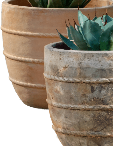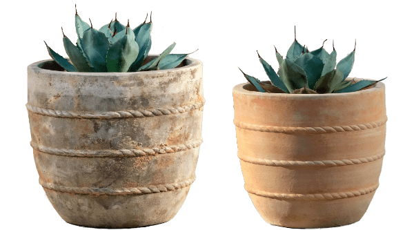 The Santorini Planter Sets are available in two incredible glazes: the Antico Terra Cotta glaze shown here and the Terra Cotta. Examples of both glazes are in the side pictures above and both are just outstanding.
