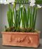 The Small Garland Flower Box is an exquisite small terracotta flower box. Handmade in Impruneta, Italy. This beautiful small box features a fruit garland design. An extremely handsome box expertly finished by today's brilliant craftsmen in Impruneta using fine tools and requiring enormous skill and patience. These pots are distinguished by their clean simple lines and are frost proof to -20° F. This is an exquisitely detailed small terra cotta container. Match with Small Square Garland Pot.
