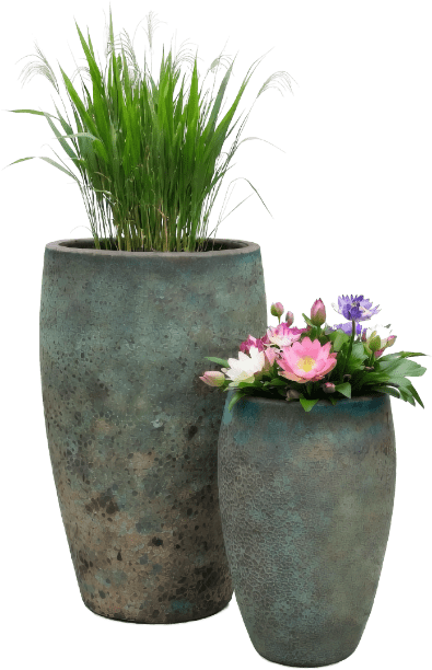 Our glazed and terra cotta pottery is high fired between 990 (terra cotta) and 1000 (glazed) degrees centigrade to ensure frost resistance and durability. Due to the processes used in the manufacturing of our hand-made and hand-glazed containers, all variations with respect to firing, color, size and crackling are natural occurrences in the manufacturing process. The glazes on our containers consist of natural, not chemical, components and therefore the final color of the product will vary. This process creates the unique beauty of each piece.