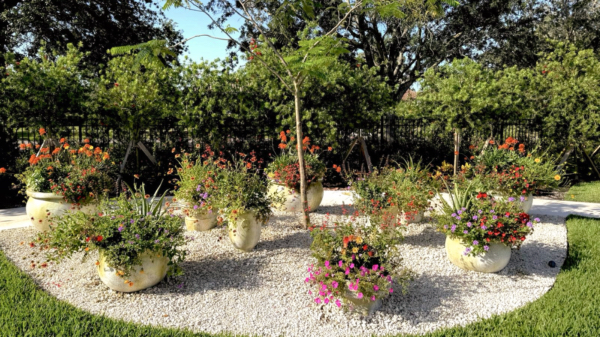 Customer supplied photo of their beautiful rock container garden with gorgeous plantings in assorted Tours Planter Pots. What a fantastic idea. We think they've created the idyllic garden nook. Click to Enlarge