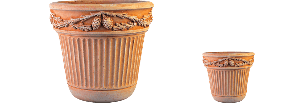 The Pinecone Planters are from the American Terracotta Collection and are designed by top American talent and handmade in Impruneta. The American Collection marries the highest standards in American style and European quality. These beautiful pots are handmade in the original molds. Each work is expertly finished by today’ s brilliant craftsmen using fine tools and requiring enormous skill and patience. These planters are distinguished by its splendid pine cones and needles relief motif and clean lines. The exquisite handmade beauty is unsurpassable, an Heirloom. Available in two sizes.