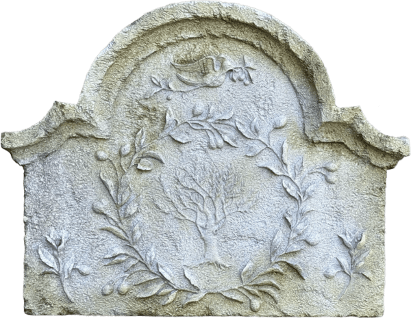 HenFeathers decorative wall plaque of an Olive tree of life surrounded by an olive leaf wreath. A dove carrying an olive twig sits at the top of the plaque. In the ancient Mediterranean world the Olive tree and its fruit were the staff of life and the basis of the economy. Olive products especially the oil were highly valued and utilized throughout the Mediterranean and the near east and were a highly lucrative traded commodity. The pottery and jars designed to use and ship were in themselves another large sector of the ancient economy. Fleets of special purpose ships plied the seas carrying the highly treasured commodity. This lovely textured plaque works well in your garden home. Great for over an outdoor/indoor fireplace, mantle, patio. terrace or garden wall, gourmet kitchen. The uniqueness of every design is captured by the hand molding and hand rubbed finishes, no two pieces are exactly alike, much like an aged antique.