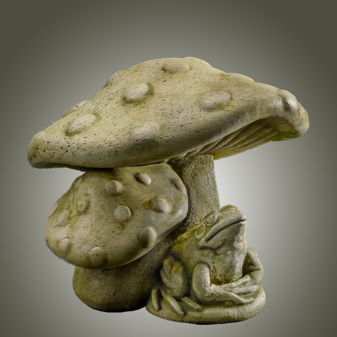 The adorability quotient of our Tucker Toadstool garden sculpt is through the roof. Tucker is a wonderful garden folly and a great gift for the gardener. Tucker is perched under two toadstools, realistic, but whimsical and leaning against each other fetchingly . Standing about 9" tall, Tucker is perfect for a garden corner nook, the veranda or any garden setting inside or outdoors. It's guaranteed, Tucker will surprise and delight the viewer.