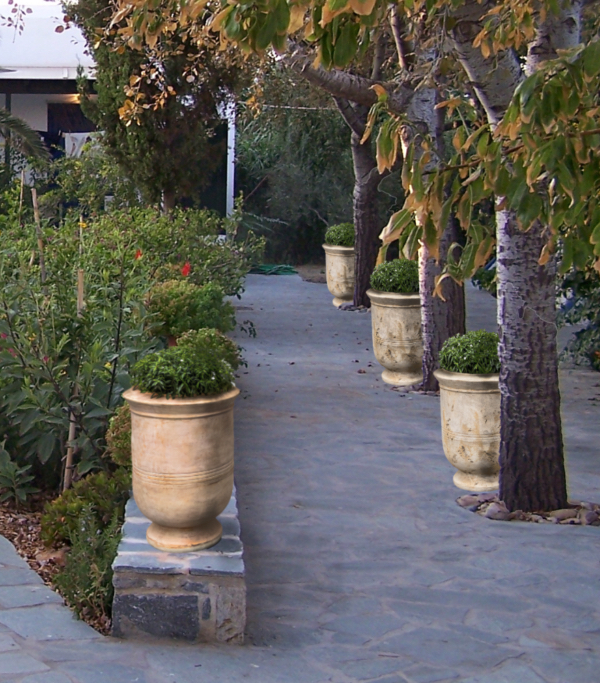 These Vaucluse Urns are a stunning Anduze style pot. Not only do they have the classic anduze shape they possess rich Terra Cotta finishes. Just beautiful. Here are two beautiful glazes available, the Terra Cotta and the Antico Terra Cotta. The Terra Cotta is the more traditional finish, while the Antico has the same, but slightly lighter base it also has a more "antique" look. They are both terrific and they are perfect for poolside, verandas, patio corners and practically any indoor/outdoor garden setting. Use them to line a walkway or accent a foyer. Meticulously hand made and hand finished in high fired terra cotta. These Anduze Urn are only available in the rich Terra Cotta finish and Antico Terra Cotta as shown above. Plant inside or outdoors, on a patio, deck or in a garden.