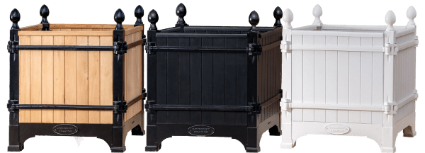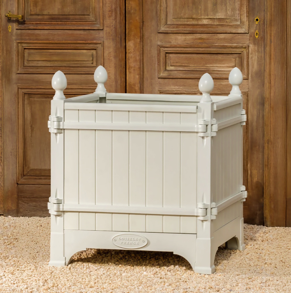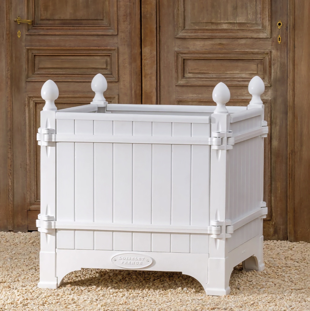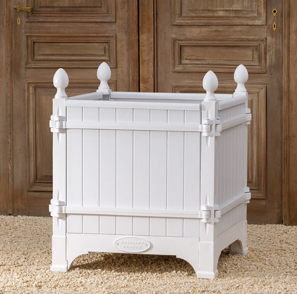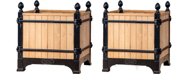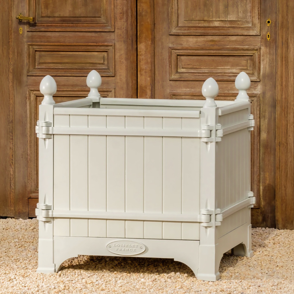 The Absolute very best! The Versailles planter boxes, a classic symbol of French garden design originating in the 17th century from the court of King Louis XIV, has a rich history of innovation throughout European gardens. Today, these planters are handcrafted from the original famous foundry in Dreux, France and continue to epitomize classic French design not only in Europe, but throughout the world. Bring elegance and grandeur to the doorstep of your maison with the Versailles Box Planters. A magnificent heirloom planter box, beautifully crafted in handmade cast iron and oak (Chene Naturale planter) or chestnut (all other colors) wood planter by renowned artisans and metal smiths of France.