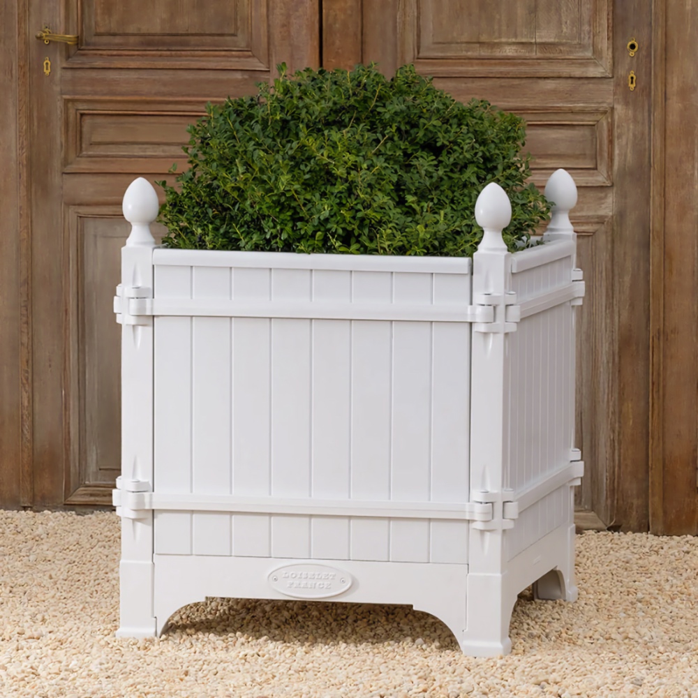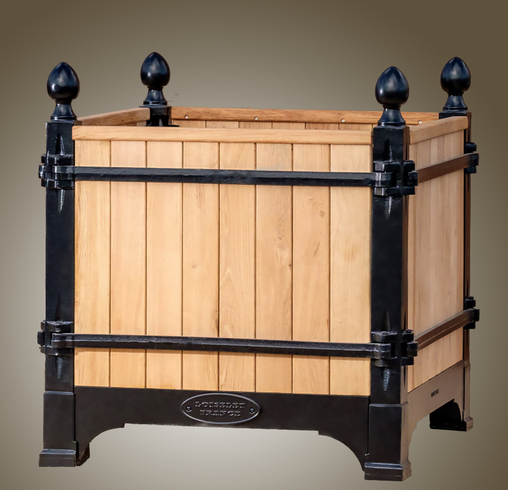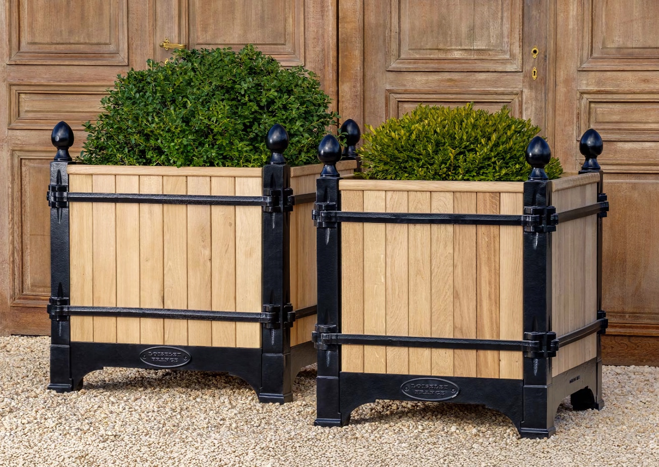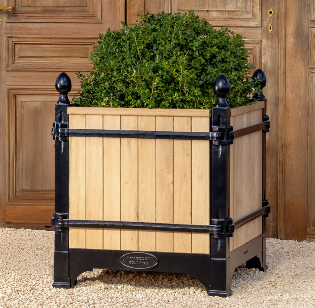 The Absolute very best! The Versailles planter boxes, a classic symbol of French garden design originating in the 17th century from the court of King Louis XIV, has a rich history of innovation throughout European gardens. Today, these planters are handcrafted from the original famous foundry in Dreux, France and continue to epitomize classic French design not only in Europe, but throughout the world. Bring elegance and grandeur to the doorstep of your maison with the Versailles Box Planters. A magnificent heirloom planter box, beautifully crafted in handmade cast iron and oak (Chene Naturale planter) or chestnut (all other colors) wood planter by renowned artisans and metal smiths of France.