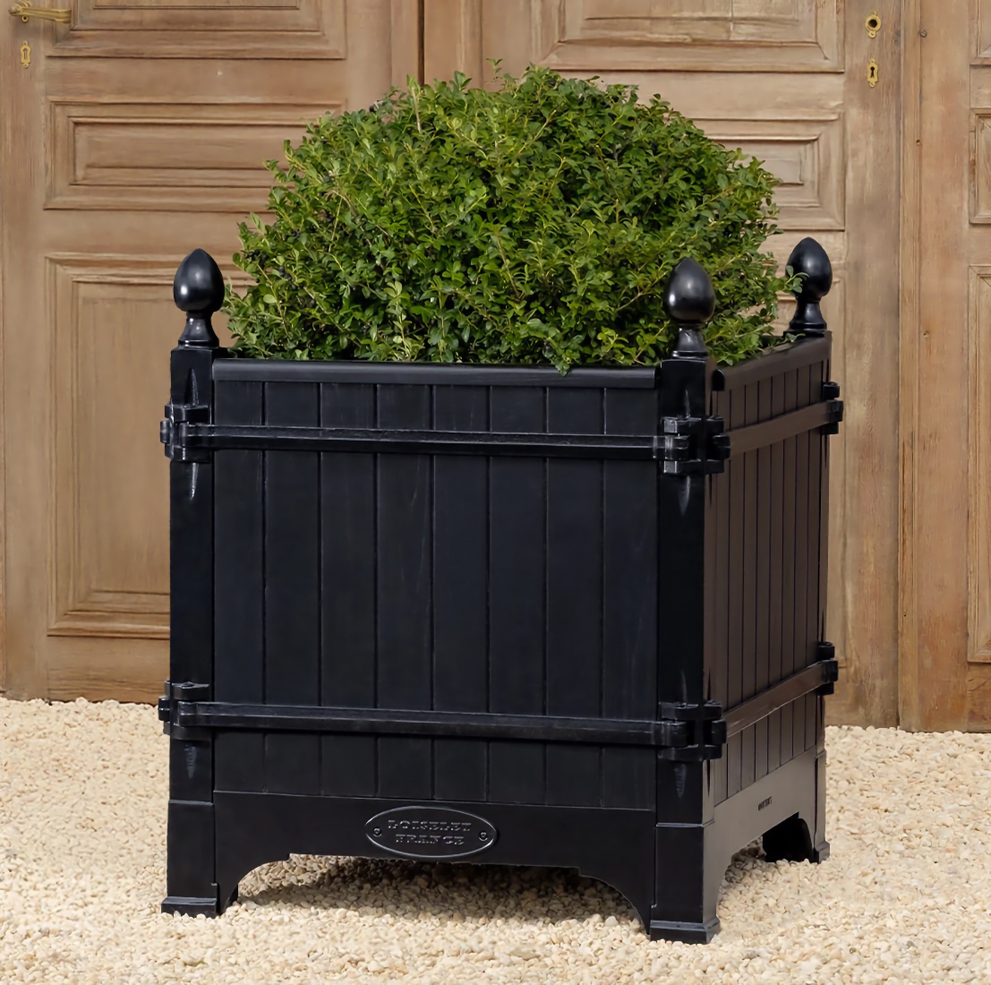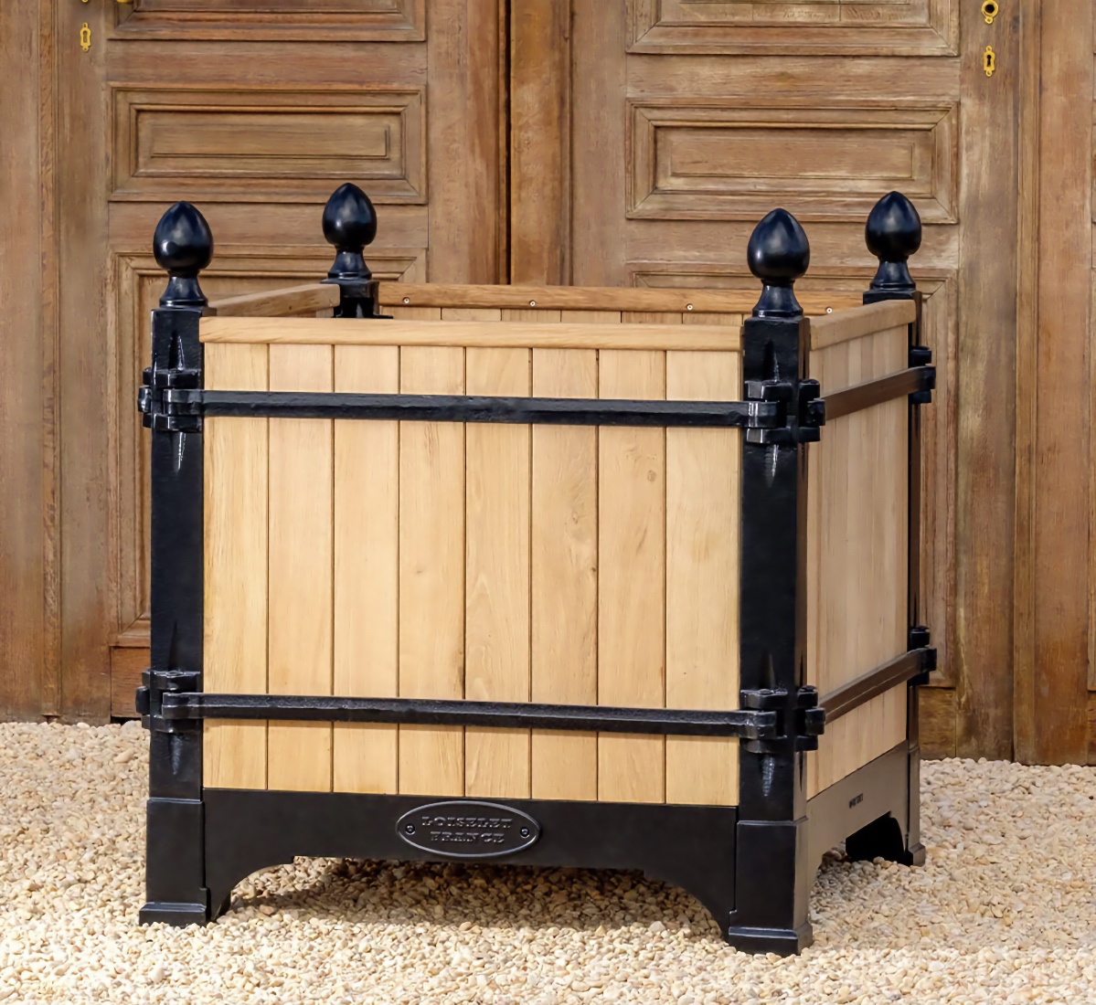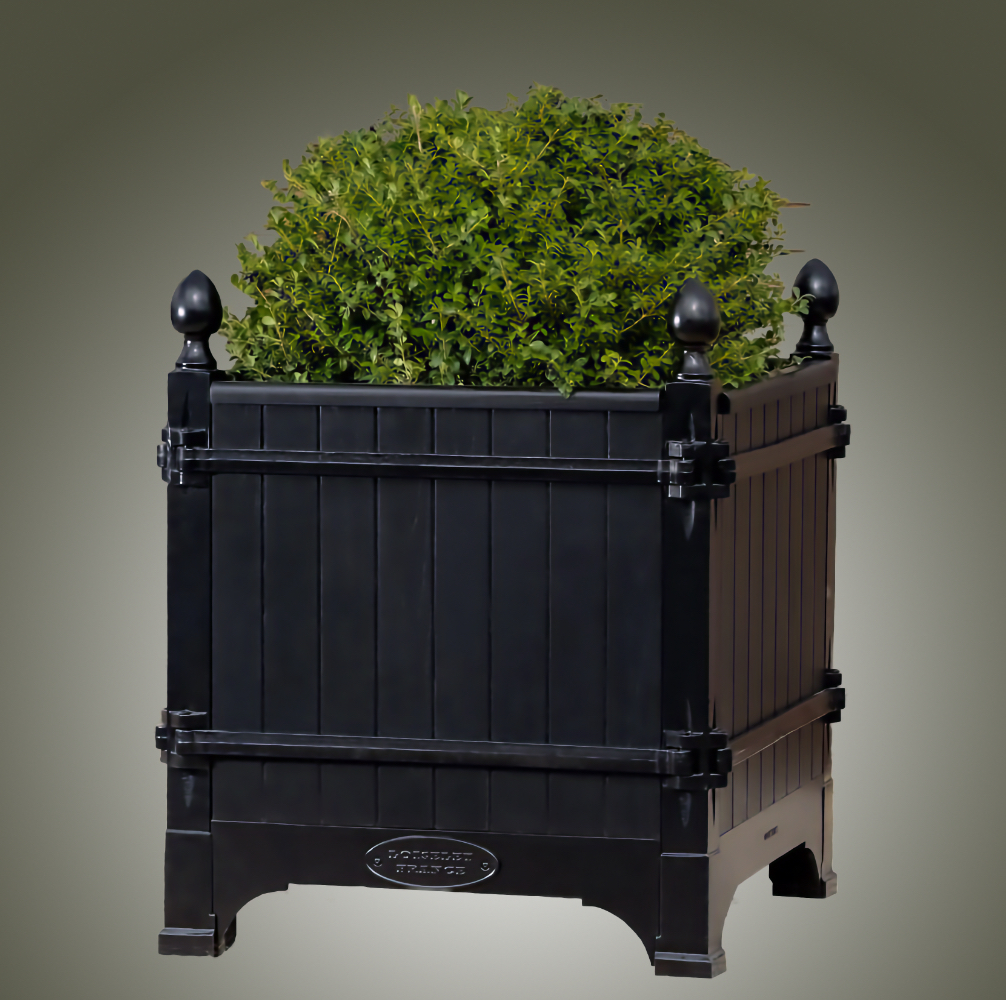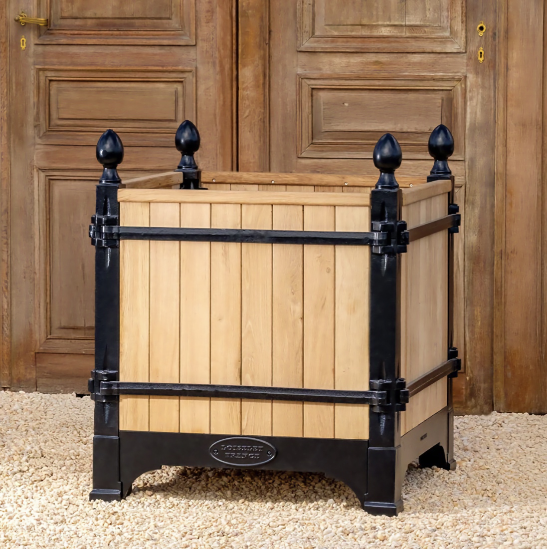The Absolute very best! The Versailles planter boxes, a classic symbol of French garden design originating in the 17th century from the court of King Louis XIV, has a rich history of innovation throughout European gardens. Today, these planters are handcrafted from the original famous foundry in Dreux, France and continue to epitomize classic French design not only in Europe, but throughout the world. Bring elegance and grandeur to the doorstep of your maison with the Versailles Box Planters. A magnificent heirloom planter box, beautifully crafted in handmade cast iron and oak (Chene Naturale planter) or chestnut (all other colors) wood planter by renowned artisans and metal smiths of France.